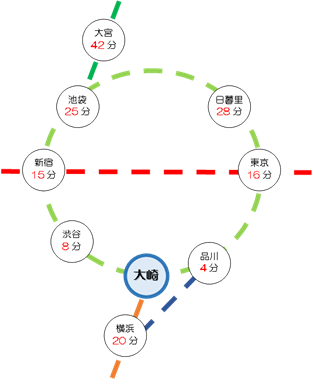 当院の最寄り駅は山手線・りんかい線「大崎駅」です。南改札出口より徒歩約8分